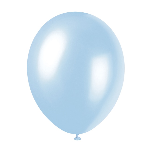 Pack of 8 pearl sky blue latex balloons for parties and celebrations.