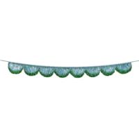 Tinsel is back in style, so let this shimmering decoration add joy and cheer to your home for a chic Christmas and New Year! Made with a stylish scalloped shape, this two-tiered light blue and green garland with a light blue glitter ribbon will add a glittery elegance to your mantel, in the window or swaying on the porch. Reusable, bring it out year after year to add sparkle to this special season.