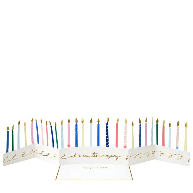 Age is just a number! And this colourful candle card is perfect to send to someone celebrating a birthday who doesn't worry about adding up the years. It features the words, "Who's counting anyway"! It also opens out to reveal a display of many candles, all with fabulous gold foil detail.