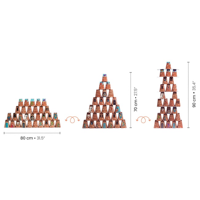 Creative Play: 30 cones with 2 illustrated surfaces for building a variety of unique castles. Create your tallest or most spectacular structure!