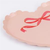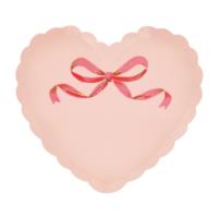 Set the scene with something sweet, these charming heart-shaped paper plates are made to be admired. Featuring a coquettish scalloped edge and a painterly bow design with gold foil highlights, they offer a fresh take on a classic look. The set includes soft pink and white plates, each with a matching colour on the reverse for style from every angle. Perfect for sweet or savoury bites, they're ideal for romantic dinners, Galentine's gatherings, anniversaries, bridal showers or engagement parties. Pretty, practical and party-ready.