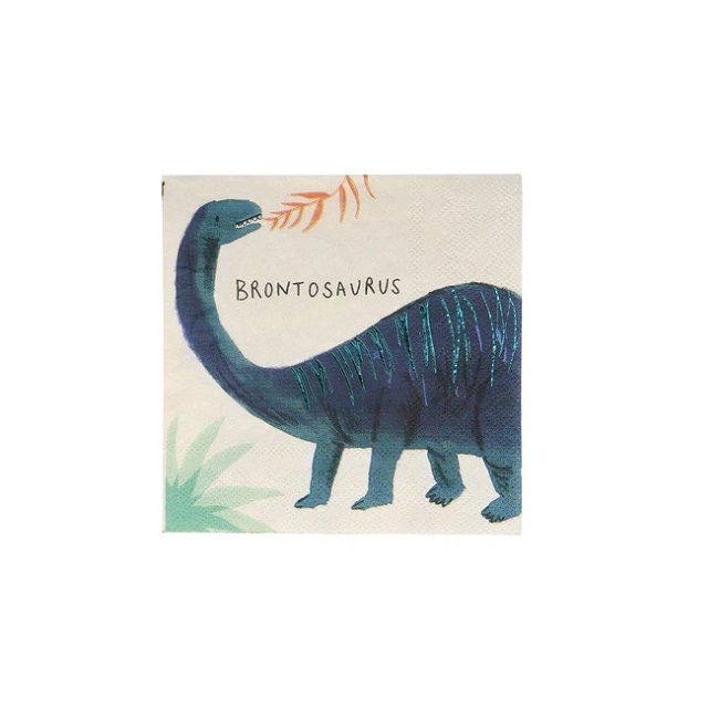These Dinosaur Kingdom small napkins will look terrific at a dinosaur party. Featuring beautifully illustrated dinosaurs with copper and green foil details.