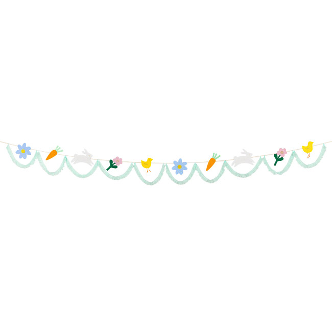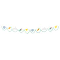 This Easter garland features Easter icons of flowers, carrots, bunnies and chicks