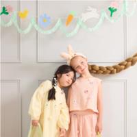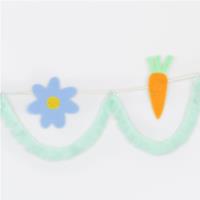 Add a touch of timeless Easter charm to your home with this embroidered fabric garland. Featuring sweet springtime felt icons of spring blooms, bunnies, carrots and chicks, all beautifully framed by a tasselled fringe for a soft, playful finish. Strung on a woven natural coloured ribbon, it's perfect for styling across a mantel, doorway, window or table. Presented in a white organza drawstring bag, it's easy to store and ready to reuse year after year for a memorable effect.