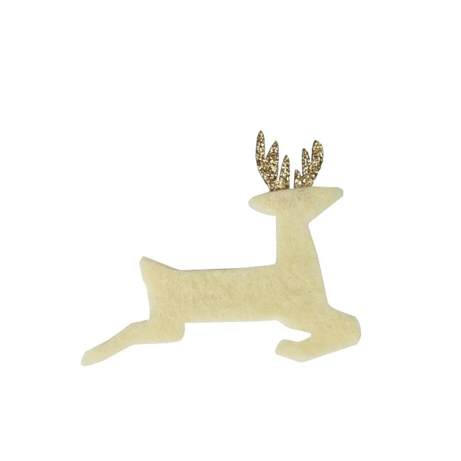 The reindeer, moon and star are backed with ivory felt, and topped with fine gold and silver glitter fabric, with silver tone hair clips.