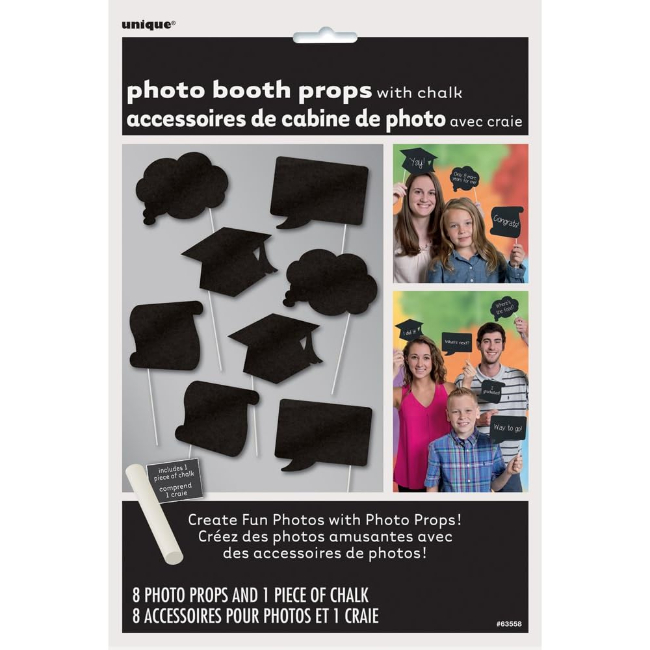 Make your grad party photos even more memorable with these Chalkboard Graduation Photo Booth Props. Featuring fun shapes of graduation caps, speech bubbles, and diplomas.