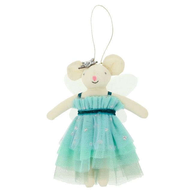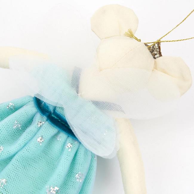 This adorable fairy mouse will add a delightful touch to your festive decorations. She is crafted from cotton, wears a pretty layered tulle dress and has white organdie wings.