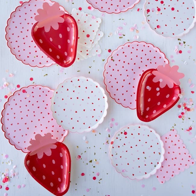 Pink and red is a trending colour combination for Valentine's celebrations. We've used them to create pink napkins with little red love hearts, teamed with a scalloped edge, to create a fabulous vintage look.