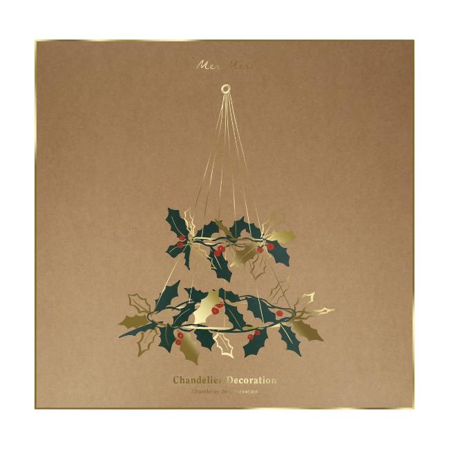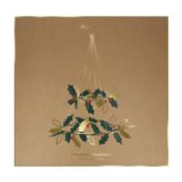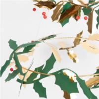 Make your home look instantly festive with this beautiful paper, wood and metal chandelier. Simply hang it in your porch or doorway, or from the ceiling, for a statement look. It blends a traditional holly design with lots of shiny gold foil for a stylish effect. And, unlike real foliage, you can reuse it year after year.