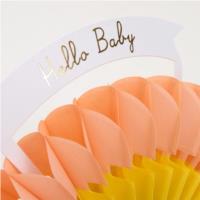 This beautiful card is a wonderful way to welcome a new arrival. It is crafted from colourful 3D tissue paper honeycomb, with a little banner that says "Hello Baby", and the word "Congratulations" on the card base.