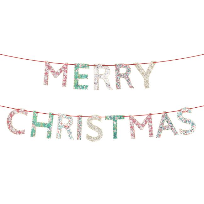 We've collaborated with Liberty to bring a touch of elegance and merriness to your Christmas decor. This stylish paper garland, featuring Liberty floral prints in joyful festive hues, with pale matt gold edged scalloped letters and red velvet ribbons, blends charm with sophistication. Perfect for your porch, doorway, wall, mantel, window, or on your party table. When the celebrations are over, simply pack away, then reuse year after year. Driven by discovery, Liberty has been home to the artistic shopper since 1875. Famed for its directional design and celebration of craftsmanship, its prints are created in the heart of London by the Liberty design studio.