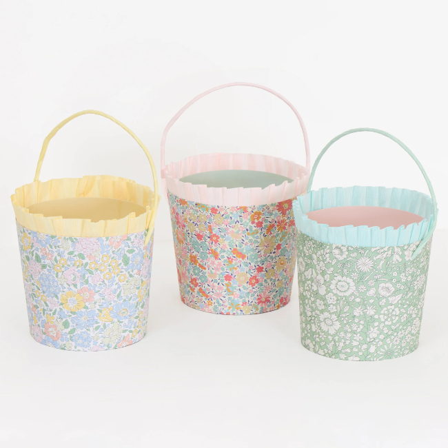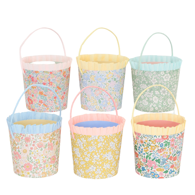 We've teamed up with Liberty to create something truly special for Easter. This set of six paper baskets comes dressed in a mix of Liberty's classic floral designs in spring tones, to add a fresh flourish to your Easter celebration. Each one is finished with a ruffled crepe paper trim and a twisted paper handle, for an extra dose of charm. Perfect for egg hunts, table decorations or party favours, they're as versatile as they are stylish. They're also ideal to send home with guests as a pretty keepsake.