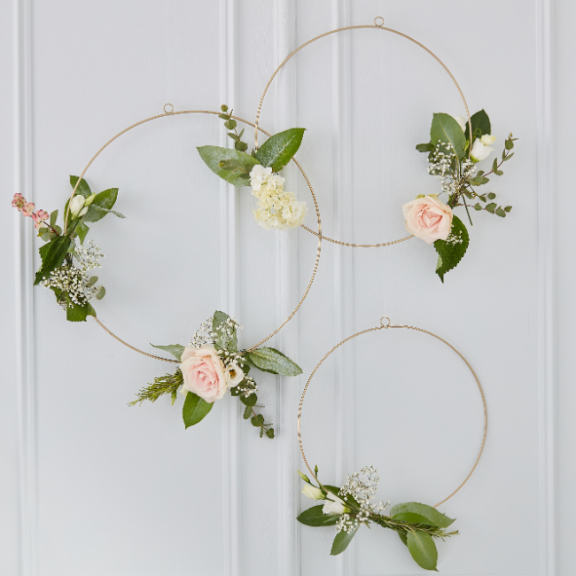 Hang these super cute gold floral hoops as a statement on your wedding day. The perfect finishing touch for your wedding. Add your personal touch to these hoops using your chosen wedding flowers and foliage to make them truly special.