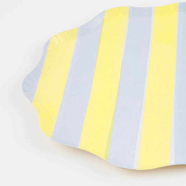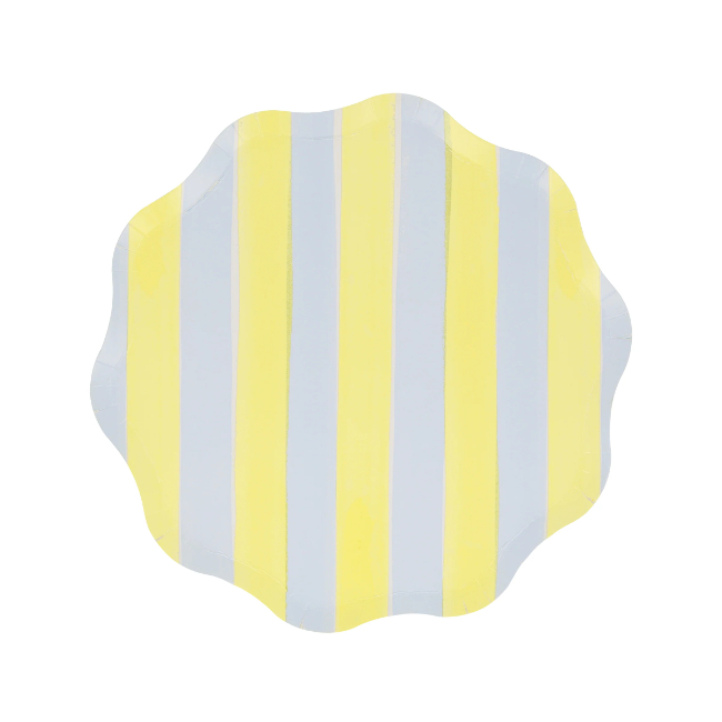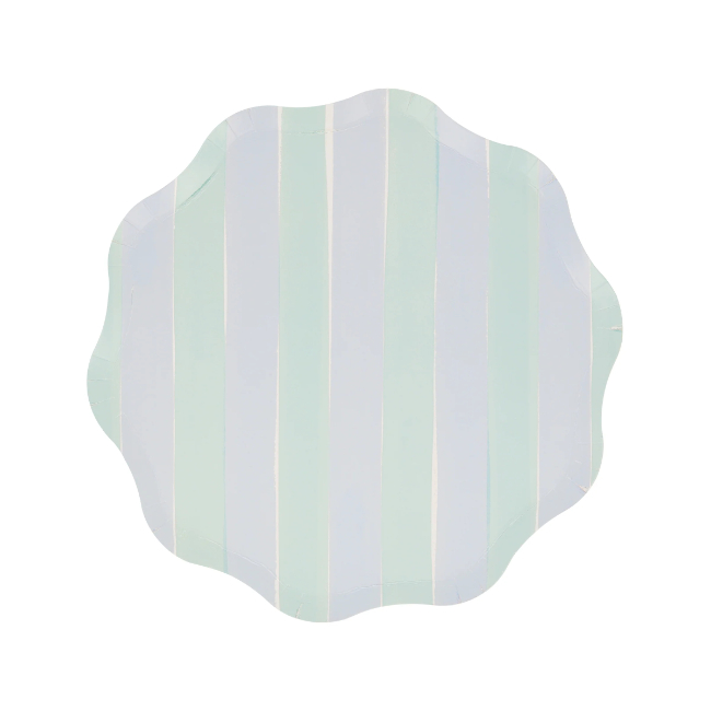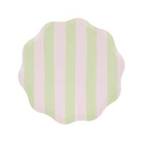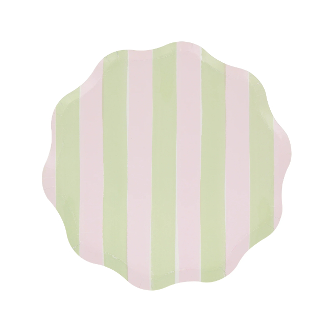 Painted effect stripes in fresh pastels are a fun addition to any party. Use them at any special meal where you want a splash of soft colour in a timeless design. These paper side plates, with a wonderful wavy edge, are ideal for table layering. They'll work well for garden parties, cocktail parties, picnics, baby showers or anytime you want a pop of springtime colour.