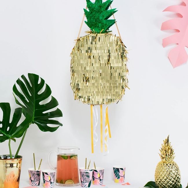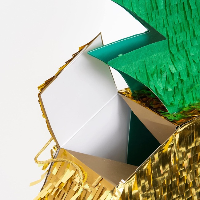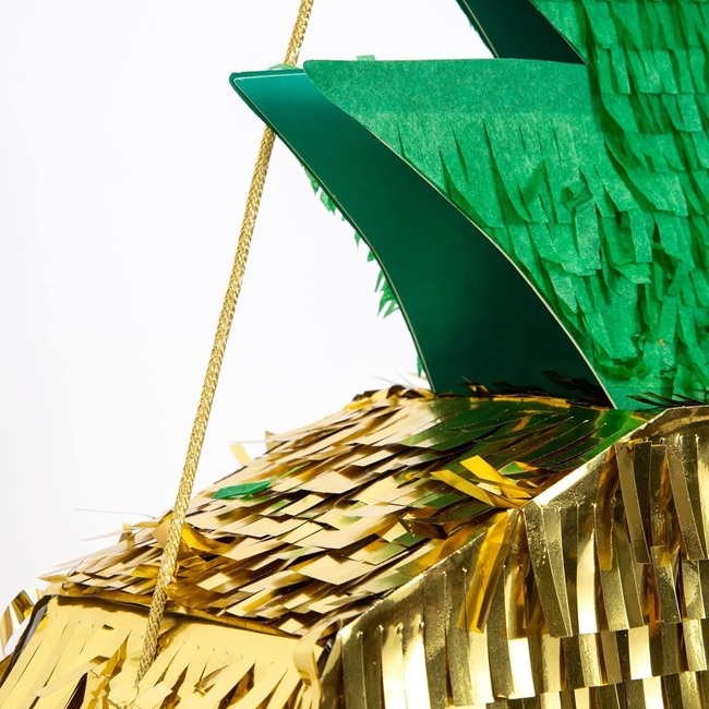 This brilliant pineapple pinata will add a touch of fun to any summery celebration. It looks amazing with lots of shiny gold foil and tissue paper fringe details.