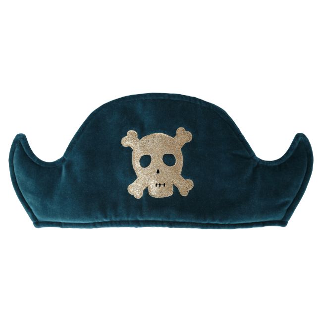 Pirate hat crafted from cotton, with a shiny silver skull and crossbones detail, with polypill