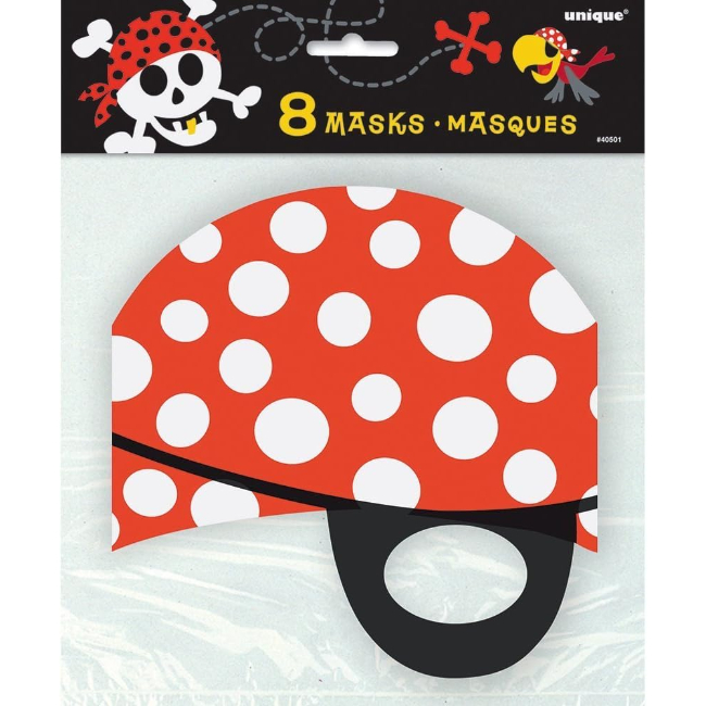 The package includes 8 Paper Party Masks that coordinate well with other pirate party supplies and matching solid color party decorations.
