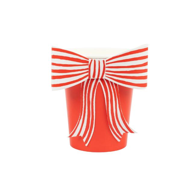 A joyful red and winter white colour scheme, teamed with chic striped bows, is the perfect blend of traditional charm and fashion-forward flair. The classic colour combination of these paper cups will team beautifully with the rest of your Christmas tableware and decorations too. Ideal to serve your festive drinks in style.