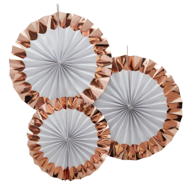 Throw a sophisticated party with this simply stunning rose gold foiled Hanging Fan Decorations!Celebrate in style by decorating the party venue with gorgeous metallic decorations.