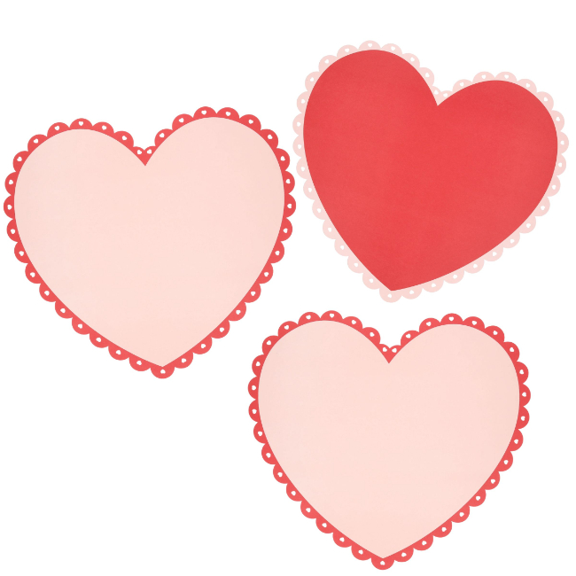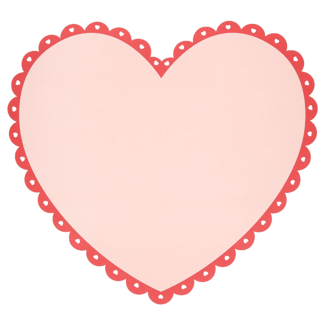 Set the scene with a romantic touch, these scalloped heart paper placemats are made with love. In bold red with pink scalloped edging and soft pink with red scalloped edging, they'll bring style and a playful contrast to your Valentine's table. Whether layered under plates or used as decorative accents, they'll add instant impact. Perfect for a Valentine's dinner, Galentine's gathering, anniversary, bridal shower or engagement party. Pretty, practical and party-ready.