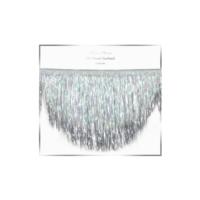 This garland is made of 2 layers of tinsel fringe in silver and iridescent