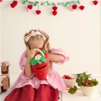 Strawberries are a fruity, summery design trending right now. Our clever designers have created this strawberry accessory crafted from red woven recycled paper and cotton, with leaf, flower and seed details and a white cord handle, effortlessly combining practicality with style. Let a pop of red uplift any outfit! Inside is a red and white gingham lining for a classic look. Perfect for kids aged 4+, and adults, who love fun bags.