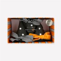 Decorated with three different ribbon bow designs of black and white stripes, black and white gingham, and soft orange velvet