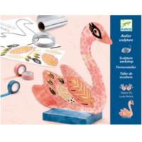 Use the metal wire to sculpt the swans frame, then adds volume by layering aluminium foil and covering it with printed tape.