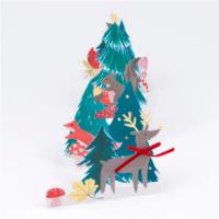 Why have a plain card when you can have one that opens out into a striking Christmas decoration on your mantel? This card, featuring winter woodland flora and fauna and a shiny gold foil star topped Christmas tree, is perfect to send your best wishes to a special someone. The beautiful bow on the reindeer's neck adds a wonderful touch too, making this a Christmas display you'll want to bring out year after year.