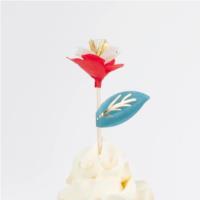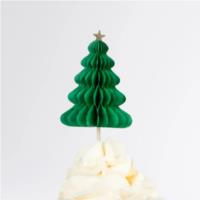 24 toppers - 6 green honeycomb trees, 6 red honeycomb mushrooms, 6 paper reindeer and 6 tissue paper flowers in red and ivory
