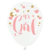 6 PACK 12" IT'S A GIRL PINK CONFETTI BALLOONS