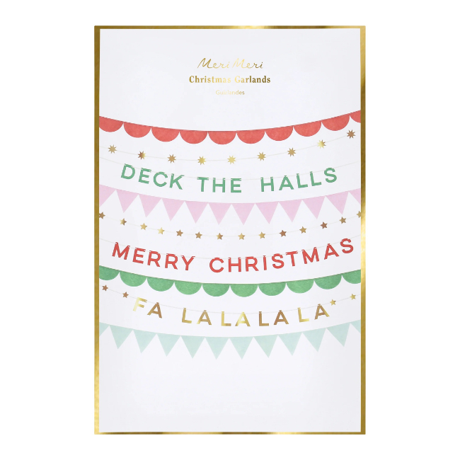 3 x Printed paper text garlands in red, dark green and shiny gold foil