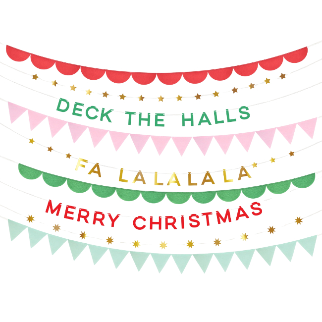 Fa la la! it's time to deck the halls and have a very Merry Christmas. This vibrant garland set is perfect to set the scene for a festive celebration. Designed in classic shades of red, green, and shiny gold, with modern pops of pink, they'll add a joyful vibe indoors and out. Hang them in windows, drape across mantels, walls, or party tables, or let them sway in the porch or from trees. A stylish way to welcome your guests and Santa! Reusable and timeless, they'll be a staple in your seasonal decor for years to come.