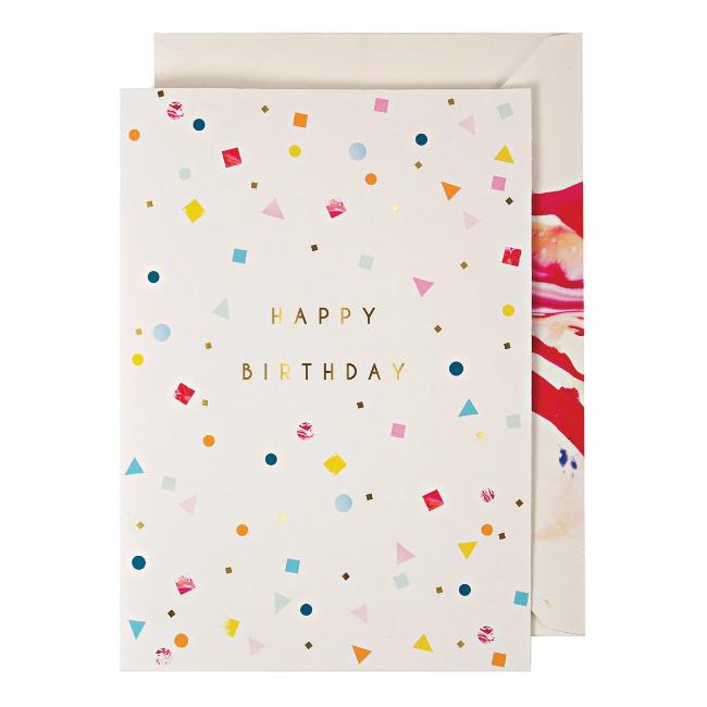 This fantastic card, with gold embellishments, not only looks brilliant on its own, but it also comes with a colourful garland - so there's double the birthday wishes and decorative effect! Comes with a coordinating envelope.
