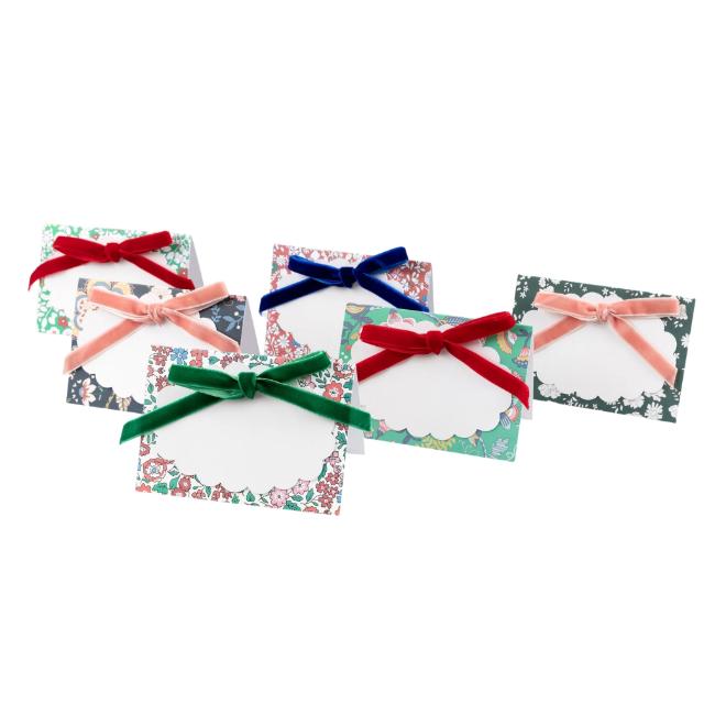 6 Paper place cards featuring 6 different Liberty floral prints in joyful festive colours