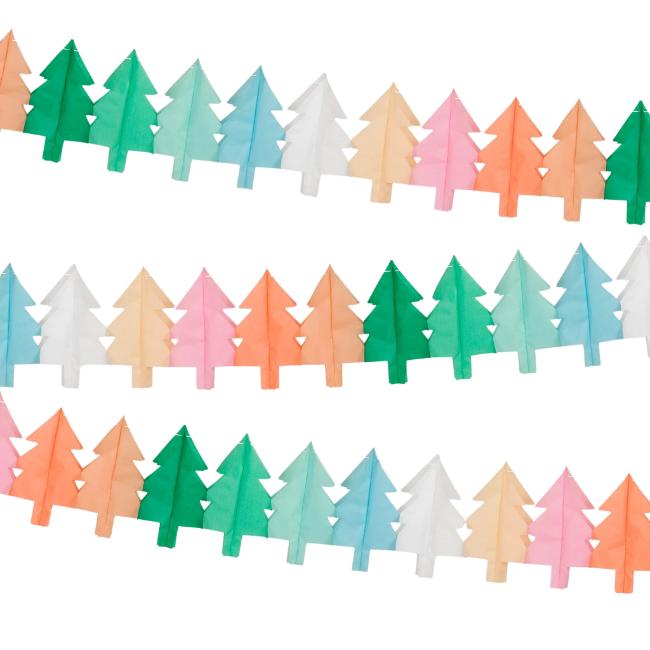 We've taken traditional tissue paper Christmas tree garlands and given them a sprinkling of Meri Meri design magic. Not just green, this colourful set also includes pops of pink, blue, peach, neon coral, yellow and white. They're perfect to hang in your doorway, on the wall or mantel, or to drape on your party table – wherever you want a modern merry and bright look. Hang them separately, or all together for a statement effect. Great to reuse year after year.